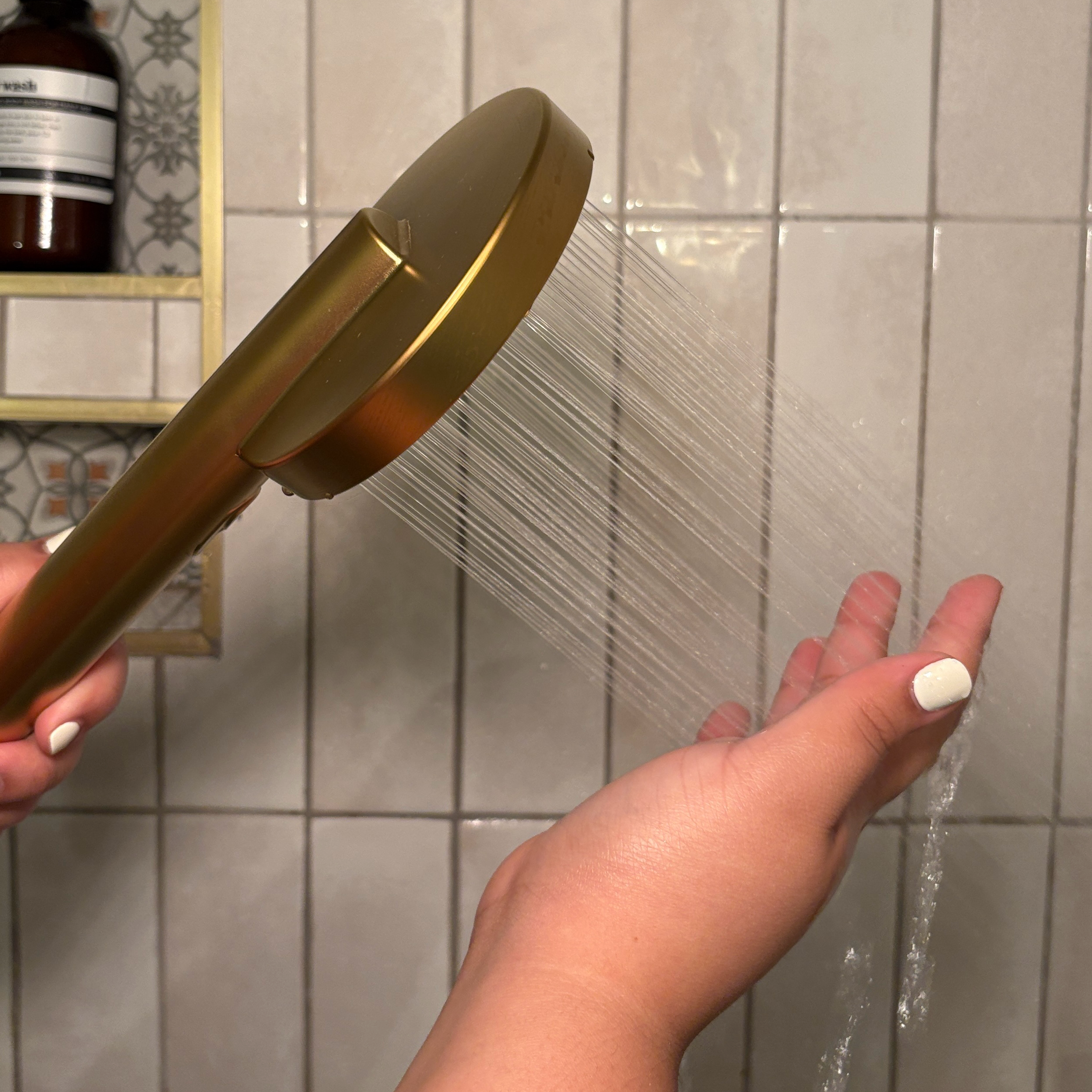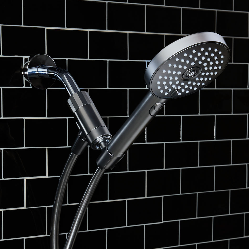You get a hand shower with three spray functions for three different feels, a pause button to help you save water, and an anti-fingerprint finish that stays looking good.
