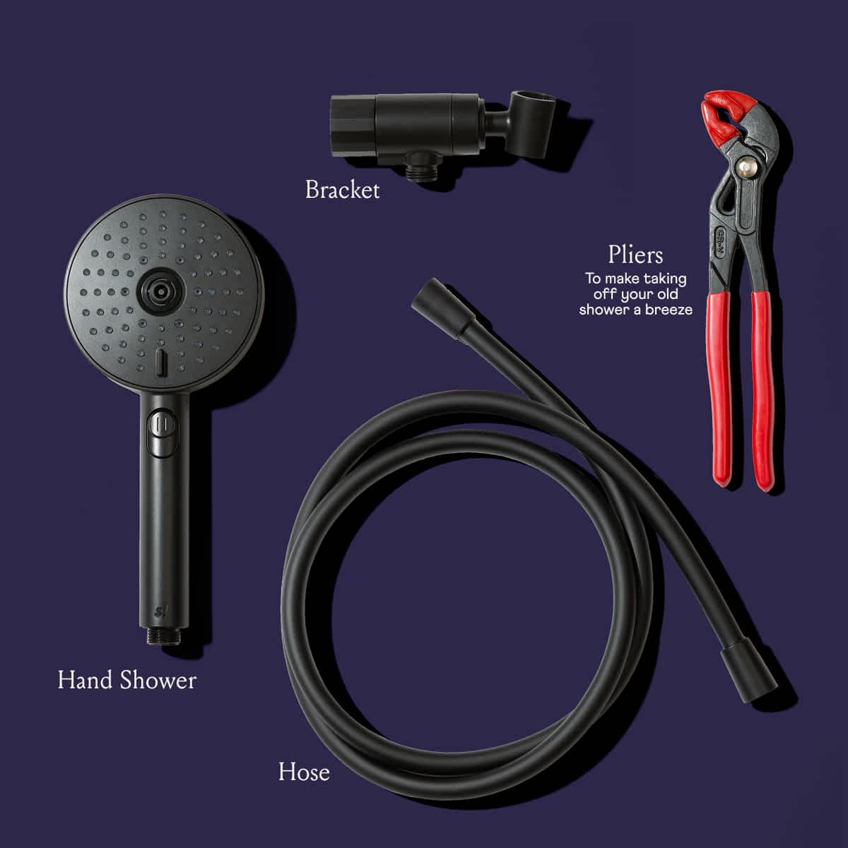 Everything you need is in the box… everything! We've included pliers to get your old shower off, and plumber's tape to prevent any leaks on your new upgrade. Do it yourself, with a little help from sproos!