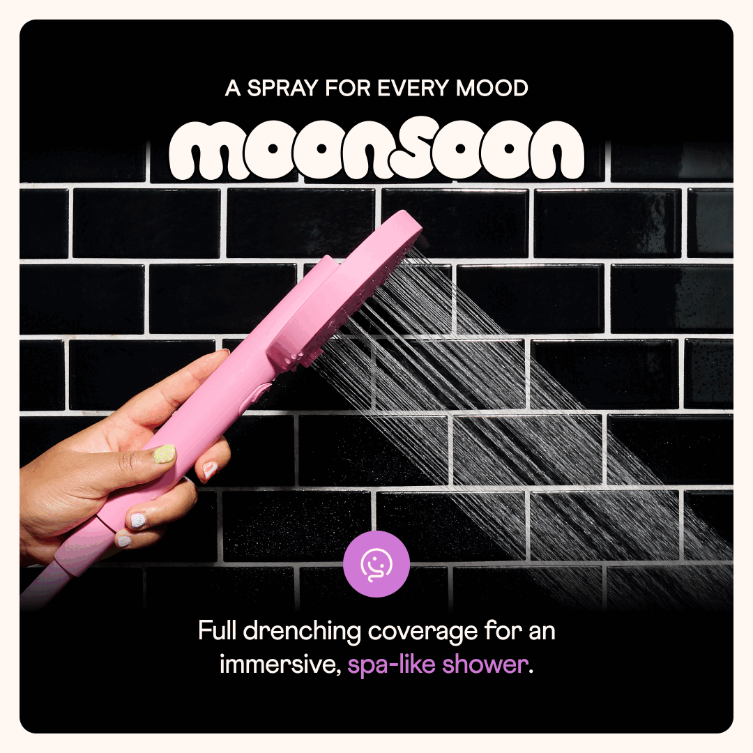 3 powerful spray settings: Monsoon, Jet, and Cloudburst