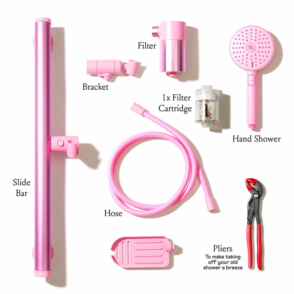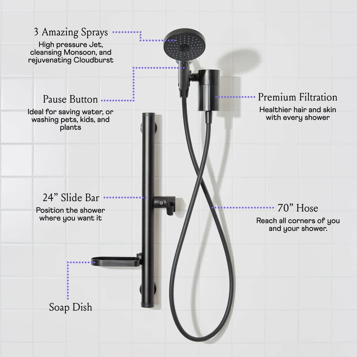 A premium dual-stage filter that helps remove chlorine, heavy metals, and bad hair days.